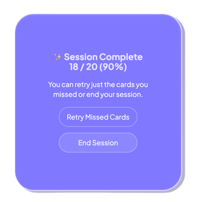 Each session ends with a fluency summary so you can reflect on accuracy and build consistency across repeated practice.